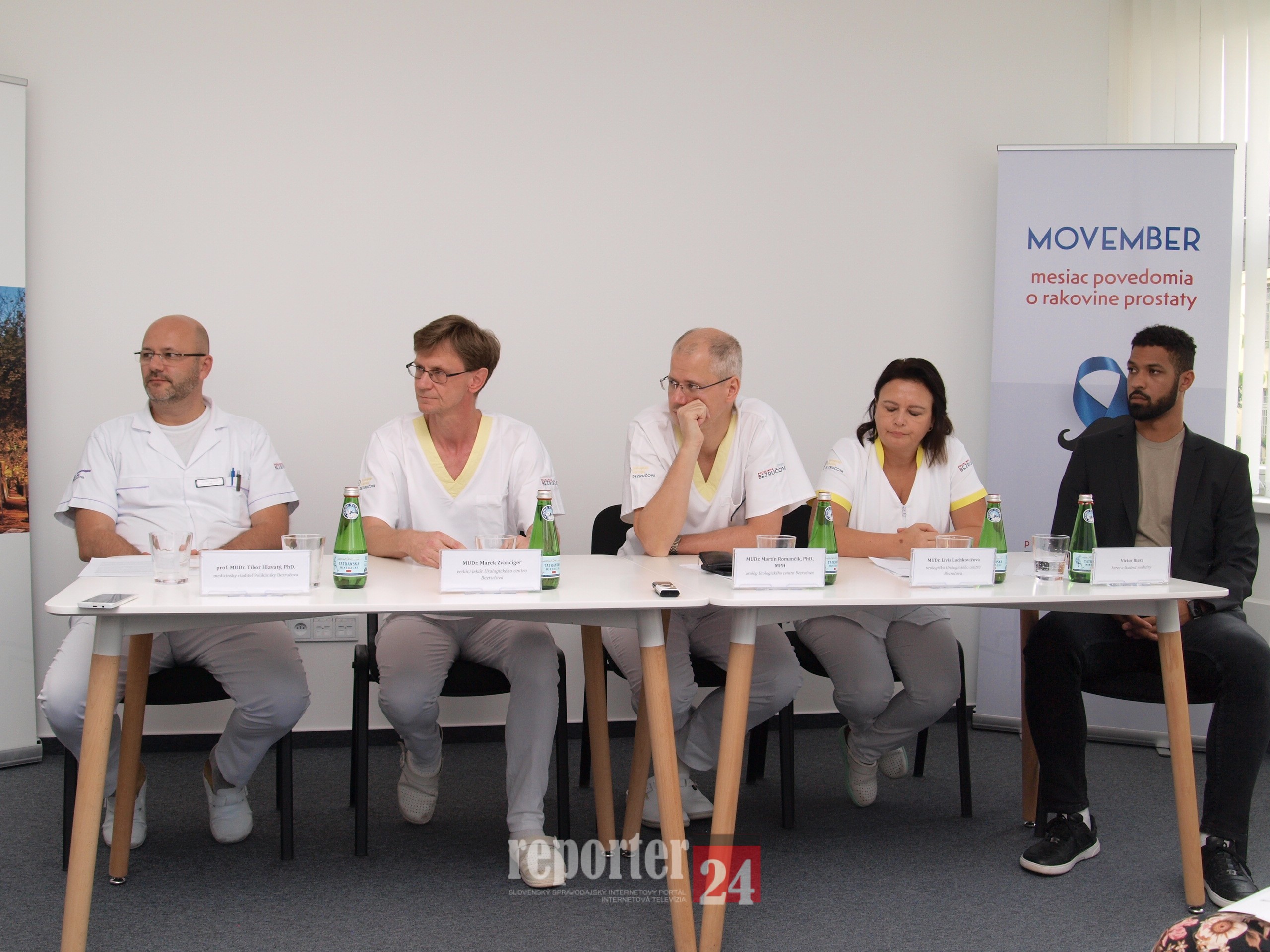 Na tlačovej konferencii diskutovali s novinármi naši poprední odborníci prof. MUDr. Tibor Hlavatý, PhD., medicínsky riaditeľ Polikliniky Bezručova, MUDr. Marek Zvanciger, vedúci lekár Urologického centra Bezručova, MUDr. Martin Romančík, PhD., MPH, urológ Urologického centra Bezručova, MUDr. Lívia Lachkovičová, urologička Urologického centra Bezručova, Victor Ibara, herec a študent medicíny.