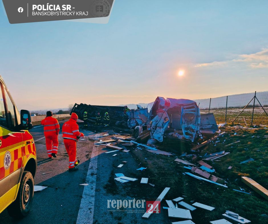 KR PZ Banská Bystrica |MM| Včera (4.2.) popoludní došlo na diaľnici R1 v smere jazdy Banská Bystrica – Zvolen k dopravnej nehode nákladného vozidla a dodávky.