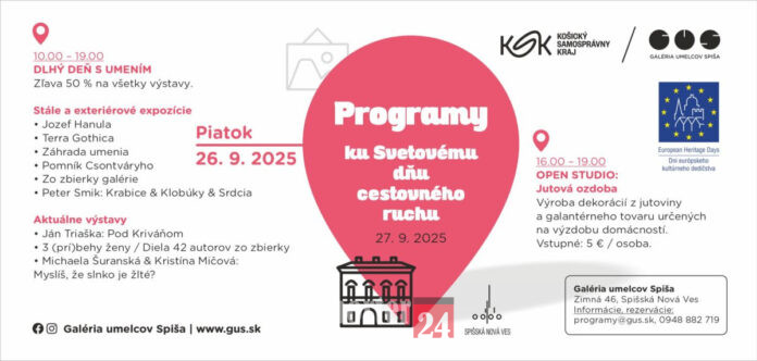 v piatok, 26. 9. 2025 v čase 10.00 – 19.00 na program realizovaný v rámci Svetového dňa cestovného ruchu, v spolupráci s Mestom Spišská Nová Ves.