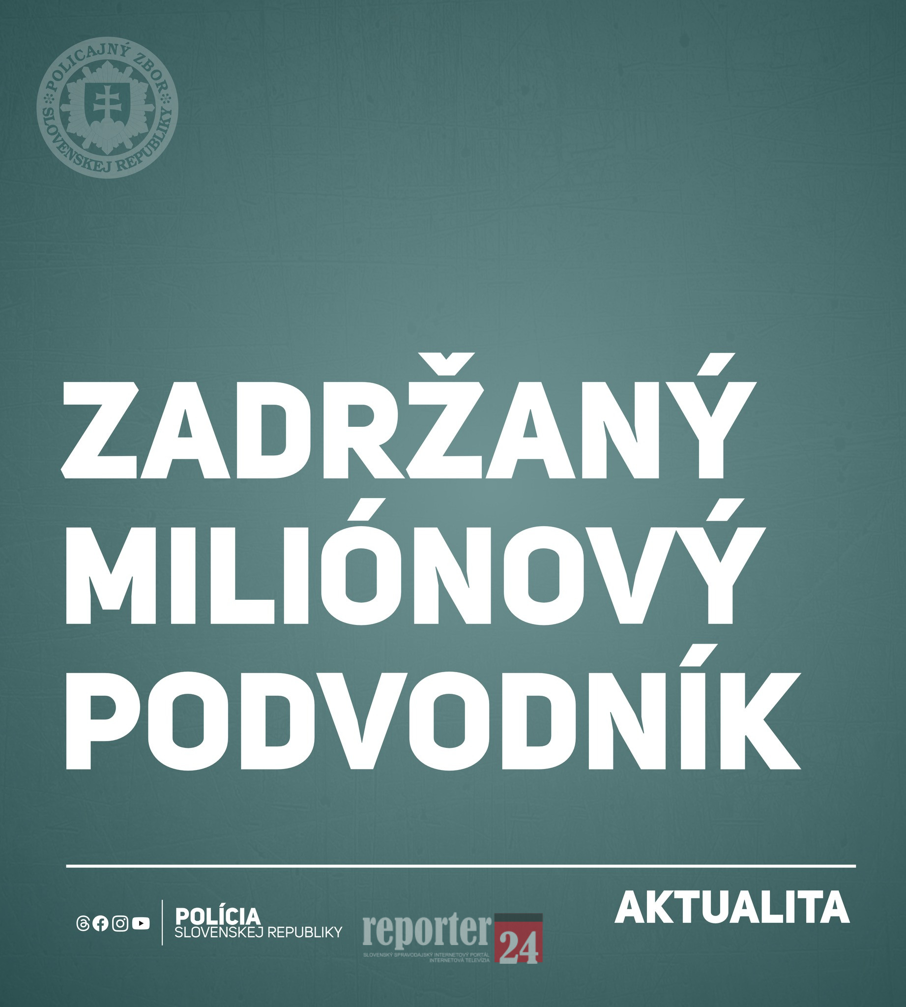 Prezídium PZ SR |MM| Protizločinecká jednotka Úradu boja proti organizovanej kriminalite Prezídia Policajného zboru vedie trestné stíhanie vo veci pokračovacieho zločinu podvodu v súbehu s prečinom falšovania a pozmeňovania verejnej listiny, úradnej pečate, úradnej uzávery, úradného znaku a úradnej značky.