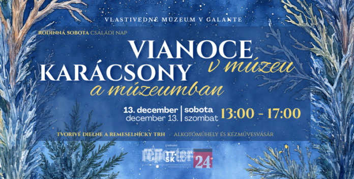 VM Galanta |MM|  Vlastivedné múzeum v Galante pripravilo pre návštevníkov sviatočné podujatie Rodinná sobota – Vianoce v múzeu, ktoré sa uskutoční 13. decembra 2025 v popoludňajších hodinách. Od 13:00 do 17:00 hod. si môžu malí aj veľkí návštevníci vychutnať tvorivé aktivity, obľúbené vianočné dielne aj malý remeselnícky trh. Posledný vstup je o 16:30 hod.