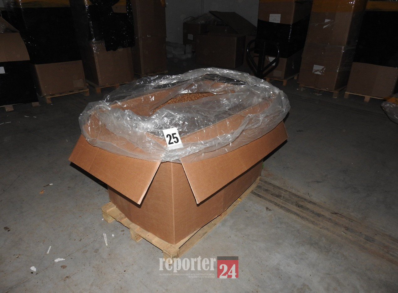 • 2, 4 ton tabaku, pričom väčšia časť tovaru bola ukrytá v maskovaných priestoroch,