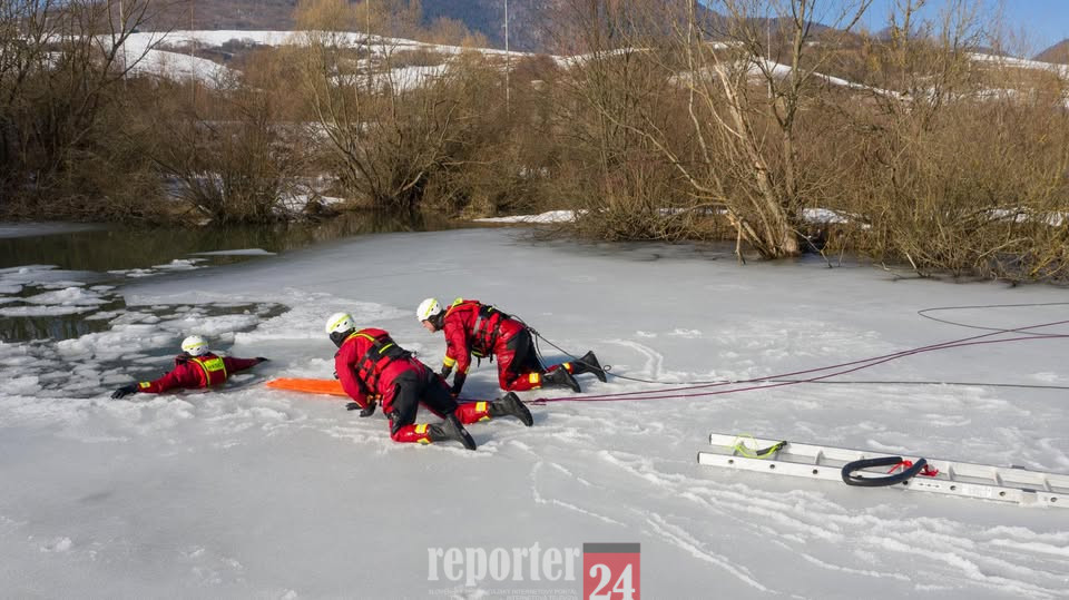 Pomáhajte len z bezpečnej vzdialenosti, bez vstupovania na ľad.