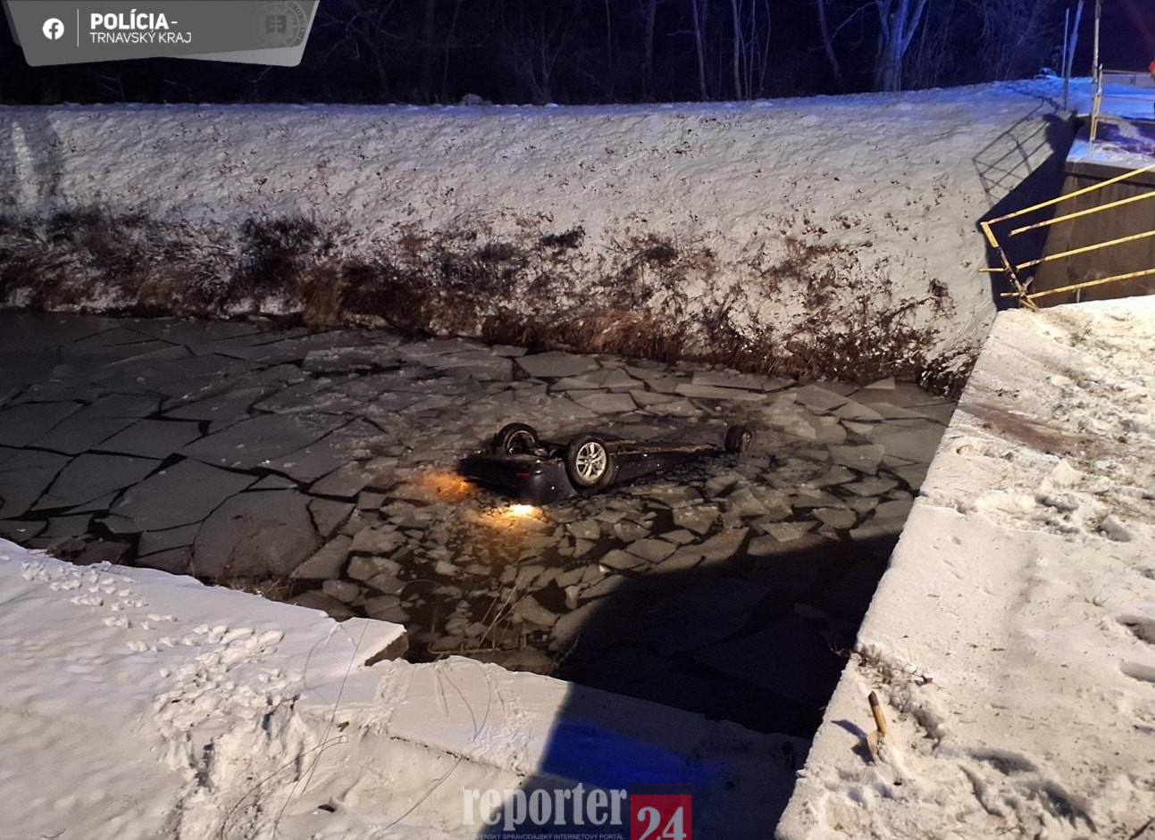 Polícia prijala oznámenie o vozidle, ktoré sa malo nachádzať prevrátené vo vode. Po príchode na miesto zistili, že sa vo vozidle nachádza osoba bez známok života.