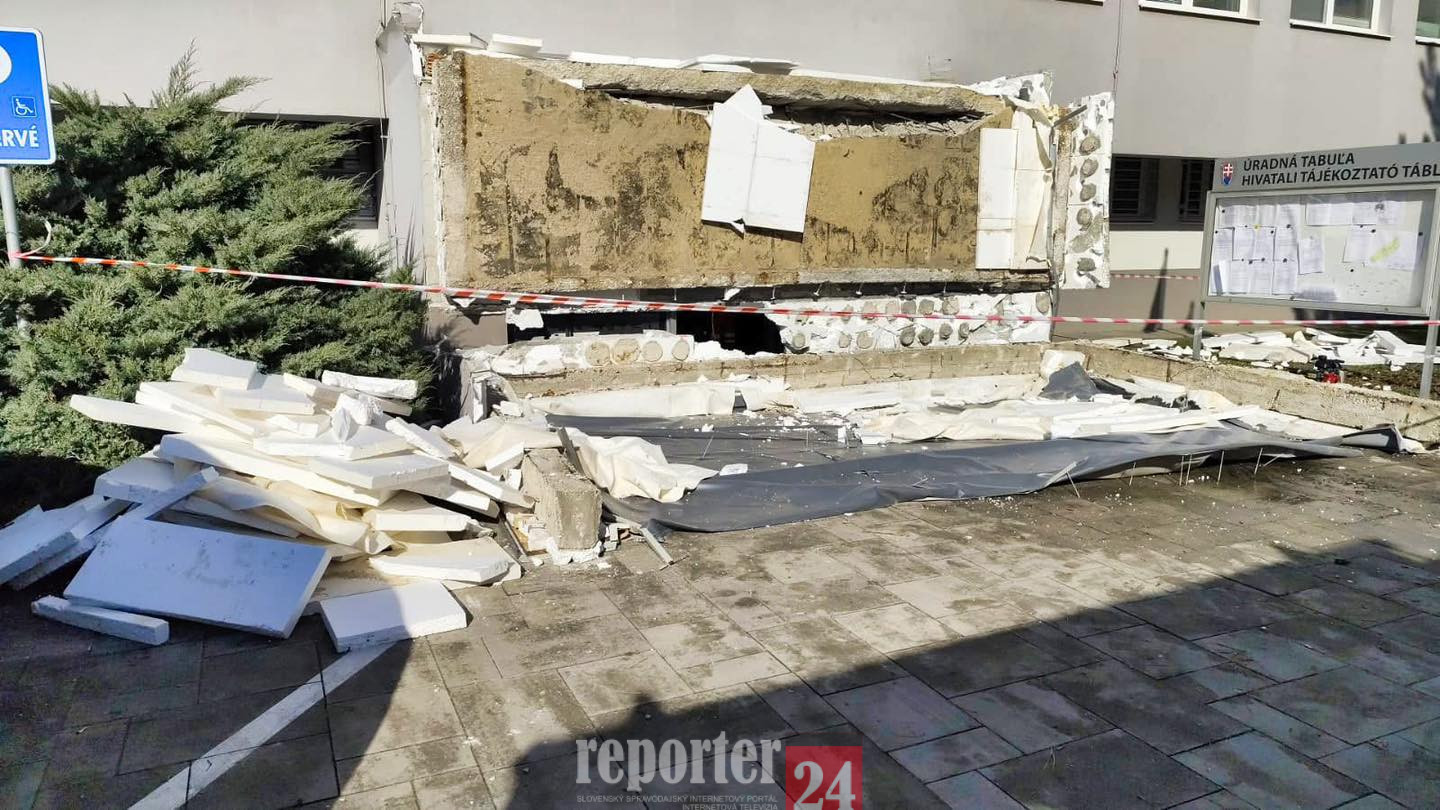 Na mieste bolo zistené, že došlo k pádu betónového prístrešku, ktorý bol umiestnený nad vstupom do budovy Klientskeho centra v Komárne.