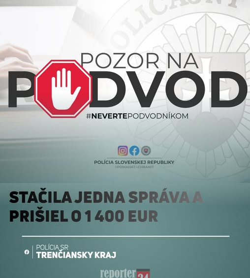 KR PZ Trenčín |MM| V tomto týždni v Trenčianskom kraji opäť evidujeme prípad podvodu, pri ktorom páchateľ vystupoval pod menom známej osoby a prostredníctvom aplikácie WhatsApp žiadal o „rýchlu pôžičku“.