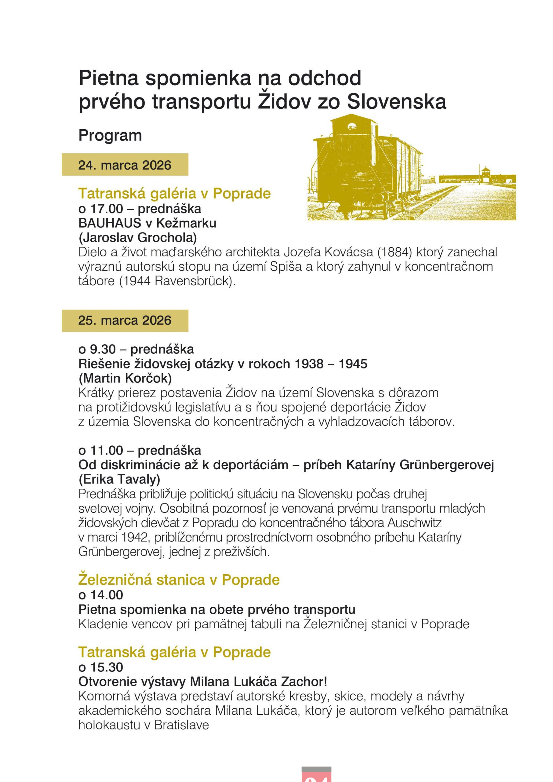 Kultúra a históriaKultúra a umenie Pietna spomienka na odchod prvého transportu Židov zo Slovenska Pridal/a: redakcia 22. marca 2026 0 Zdieľam FacebookTwitterPinterestWhatsApp Vážení priatelia, kolektív Tatranskej galérie Vás pozýva na podujatie venované spomienke na prvý transport Židov zo Slovenska. Obchodný register po novom: menej papierov, viac istoty a jednoduchší štart podnikania redakcia - 9. februára 2026 Čítať ďalej Predchádzajúci článokPozor na chyby pri poukazovaní 2 % Komentáre: 0 ZANECHAŤ ODPOVEĎ Zrušenie odpovede Komentár: Zadajte svoj komentár! Meno: Zadajte svoje meno tu Email: Zadali ste nesprávnu e-mailovú adresu! Zadajte svoju e-mailovú adresu Webové stránky: Uložiť moje meno, e-mail a webové stránky v tomto prehliadači pre nabudúce poznámku. Current yeignore me@r* Leave this field empty Odporúčané články Ekonomika Pozor na chyby pri poukazovaní 2 % FS SR |MM| Po novom môžu fyzické osoby poukázať 2 % zo zaplatenej dane okrem neziskových organizácií aj... Bezpečnosť Koniec hazardu so zdravím detí: STOPKA „DROGOVÝM CUKRÍKOM“ Z AUTOMATOV! MV SR |MM| Ministerstvo vnútra a ministerstvo zdravotníctva spoločne reagujú na nebezpečný fenomén predaja produktov s novými psychoaktívnymi... Krimi správy Akcia „POŠTÁR“ – Policajt si mal nechávať preplácať e-kolky od žiadateľov o udelenie pobytu na území SR Prezídium PZ SR |MM| Vyšetrovateľ Úradu inšpekčnej služby dňa 18.03.2026 v rámci policajnej akcie s krycím názvom „POŠTÁR“... Krimi správy Polícia nekompromisne zasahuje proti drogám a psychoaktívnym látkam v automatoch Prezídium PZ SR |MM| Policajný zbor dlhodobo a dôsledne zasahuje proti drogovej trestnej činnosti a opätovne zdôrazňuje, že... Bezpečnosť Aj takéto autá jazdia po cestách. Ďalšie vozidlo neprešlo policajnou kontrolou KR PZ Žilina |MM| Policajti z Oddelenia cestného dozoru a špeciálnych kontrol KDI v Žiline počas výkonu služby,... Dopravné nehody Vážna nehoda na priechode pre chodcov v obci Pôtor: 10-ročnú chodkyňu zrazilo nákladné auto KR PZ Banská Bystrica |MM| K mimoriadne vážnej dopravnej nehode došlo dnes (20.3.) krátko popoludní v obci Pôtor... HaZZ Požiar kamiónu na diaľnici D4 smerom do Rakúska HaZZ | Príslušníci Hasičského a záchranného útvaru hlavného mesta Slovenskej republiky Bratislavy boli dnes 19. marca privolaní na... Bezpečnosť Odhalili sme desiatky vodičov pod vplyvom alkoholu počas rannej kontroly Prezídium PZ SR |MM| Počas dnešnej celoslovenskej osobitnej kontroly cestnej premávky, ktorá trvala 2 a pol hodiny, sme... Školstvo Elektronická maturita 2026: Významný míľnik v modernizácii slovenského školstva MŠVVM SR |MM| V školskom roku 2025/2026 sa na Slovensku uskutočnil prvý ročník elektronickej externej časti maturitnej skúšky.... Krimi správy MIMORIADNY POZOR: Tento podvod je nebezpečný, namiesto „preplatku“ prídete o všetko! Prezídium PZ SR |MM| Desiatky z vás nám posielate screenshoty emailu, ktorý im pristál v emailovej schránke. Podvodníci... Krimi správy Nočné vyčíňanie na čerpacej stanici v Ilave sa rýchlo skončilo zásahom polície KR PZ Trenčín |MM| Minulý týždeň v nočných hodinách 32-ročný muž na čerpacej stanici v Ilave násilím vytrhol... Krimi správy Ostražitosť príslušníkov finančnej správy zabránila možnému požiaru rodinného domu FS SR |MM| Pohotová reakcia príslušníkov finančnej správy z Colného úradu Nitra zabránila vzniku požiaru rodinného domu v obci...
