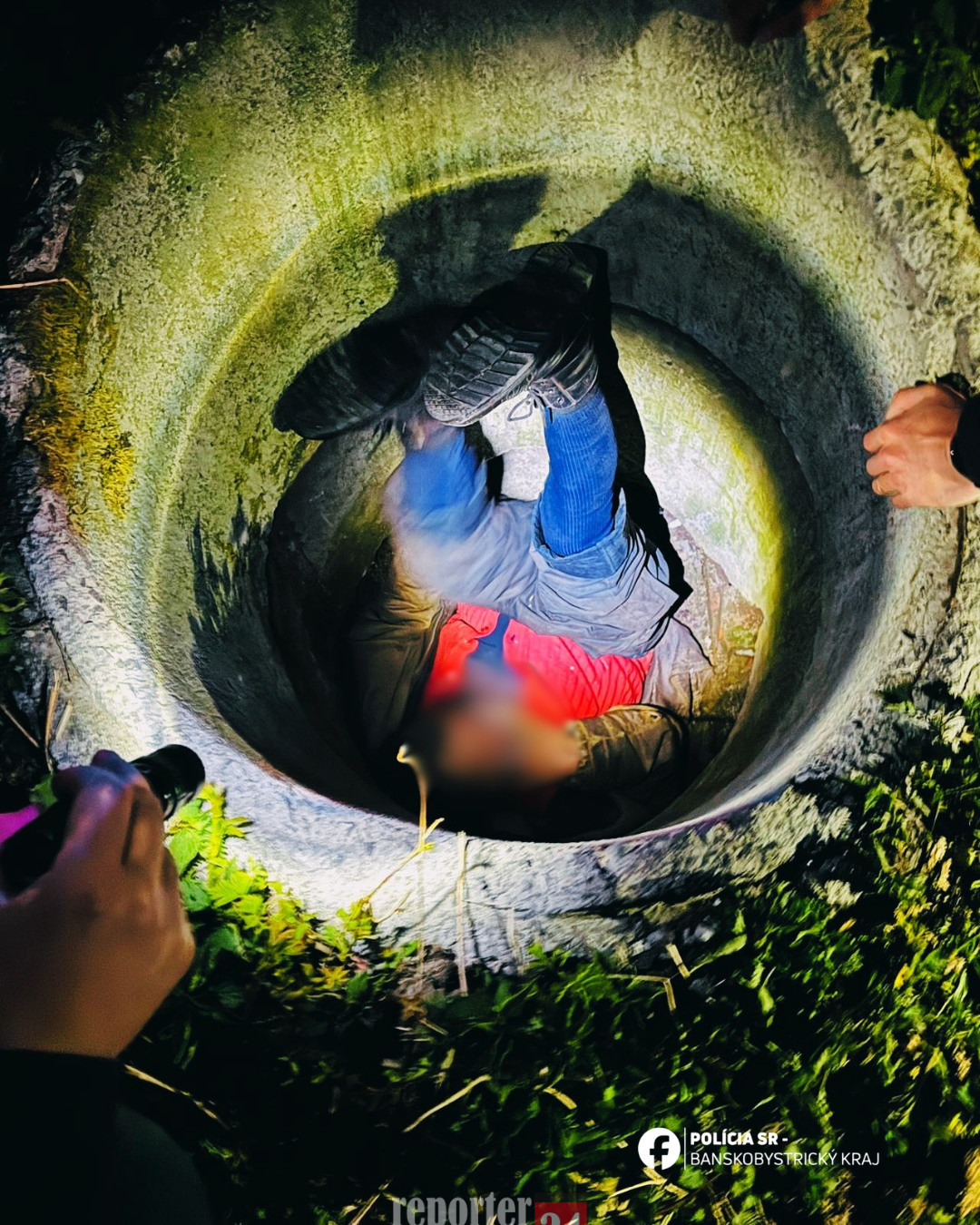 Boli to práve kriminalisti Okresného riaditeľstva PZ v Banskej Bystrici, ktorí už za tmy okolo 21.00 hod. začuli na jednej z lúk podozrivé zvuky. Po dôkladnom hľadaní našli betónovú šachtu a v nej v polohe dolu hlavou zakliesneného muža.